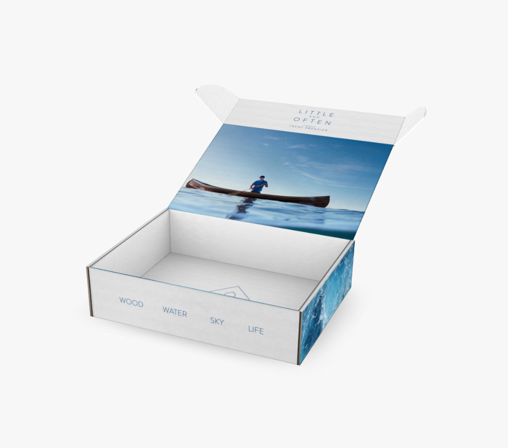 Goal: The client requested a package that would elevate the release of their book 'Little and Often'. I took the clients business of building bespoke canoes and tied their four tenets: Wood, Water, Sky, and Life, to create a design that was simple but fully captured the essence of the client.